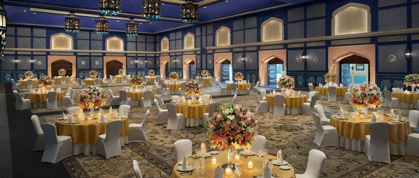 Recognized globally as a top travel destination, the enchanting capital of Rajasthan provides an idyllic backdrop for an unforgettable palace wedding experience. Amidst this picturesque allure, Fairmont Jaipur sets the stage for the commencement of a “happily-ever-after” journey in grandeur. This palace hotel offers refined and elegant Jaipur wedding venues suited for ceremonies and receptions of varying sizes, along with exemplary catering and meticulous onsite planning services, ensuring that the wedding day unfolds flawlessly.