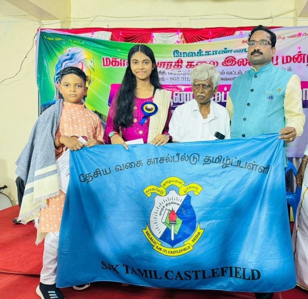 The ceremony, which took place on May 14th this year, had a global flair to it as six Young Indian Students from Malaysia set out to win the coveted Bharathiyar Award, which required them to travel to India. They included two students from SJKT Castlefield in Puchong, Pirshveena Jayaraja, a standard 6 student, and Seshveen Jayaraja, a standard 3 student.