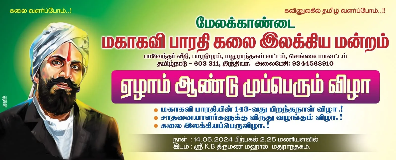 The Mahakavi Bharati Arts and Literature Forum celebrated its Seventh Anniversary and the 143rd birthday of renowned poet Mahakavi Bharathiyar with a program honoring talent, inspiration, and cultural legacy. At the Bharathiyar Awards event on this important day, literary prowess, creative fervor, and the recognition of extraordinary achievements came together.