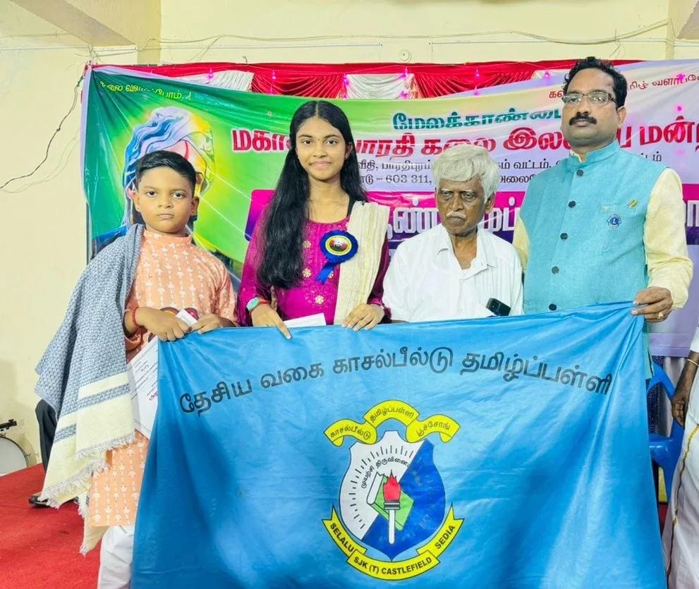 The ceremony, which took place on May 14th this year, had a global flair to it as six Young Indian Students from Malaysia set out to win the coveted Bharathiyar Award, which required them to travel to India. They included two students from SJKT Castlefield in Puchong, Pirshveena Jayaraja, a standard 6 student, and Seshveen Jayaraja, a standard 3 student.