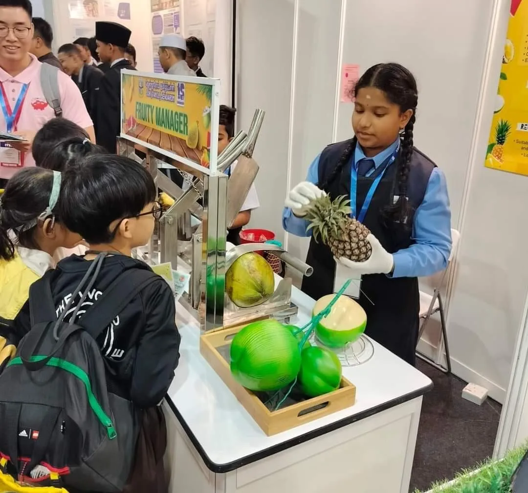 Three students from SJKT Jenjarom participated in the ITEX 2024 exhibition, presenting two remarkable projects. Aksshaya Prata Baskaran and Sharvesh Baskaran teamed up to create and demonstrate a project titled “Fruity Manager.” At their booth, they explained the intricate details and functionalities of their project to the visitors. Their impressive presentation and innovative idea earned them a well-deserved silver medal.