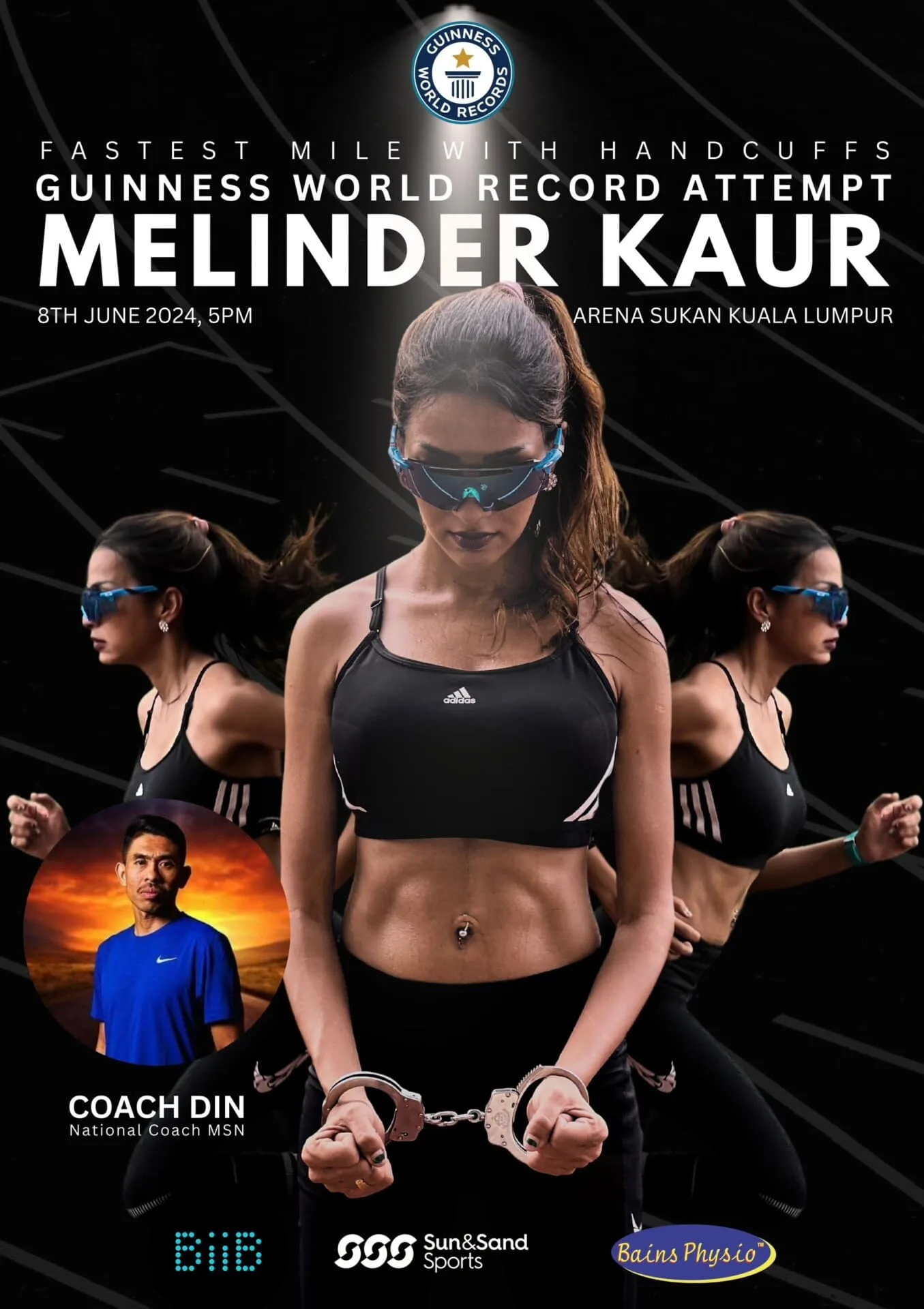 Recently, Melinder had achieved her fifth national record on 28th of January 2023 for becoming the first Malaysian woman to run non-stop backwards on a treadmill for 12 hours, covering the distance of 46.8km. After a year, Melinder is aiming to go one step higher. The current record she is preparing to attempt involves running a mile in the fastest time possible while being restrained by handcuffs. Furthermore, Melinder has successfully completed four time trials, consistently surpassing the current world record’s times. This accomplishment has bolstered her confidence in her ability to achieve the world record. This attempt is set to take place on 8th June 2024, at the Arena Sukan Kuala Lumpur starting from 5pm.