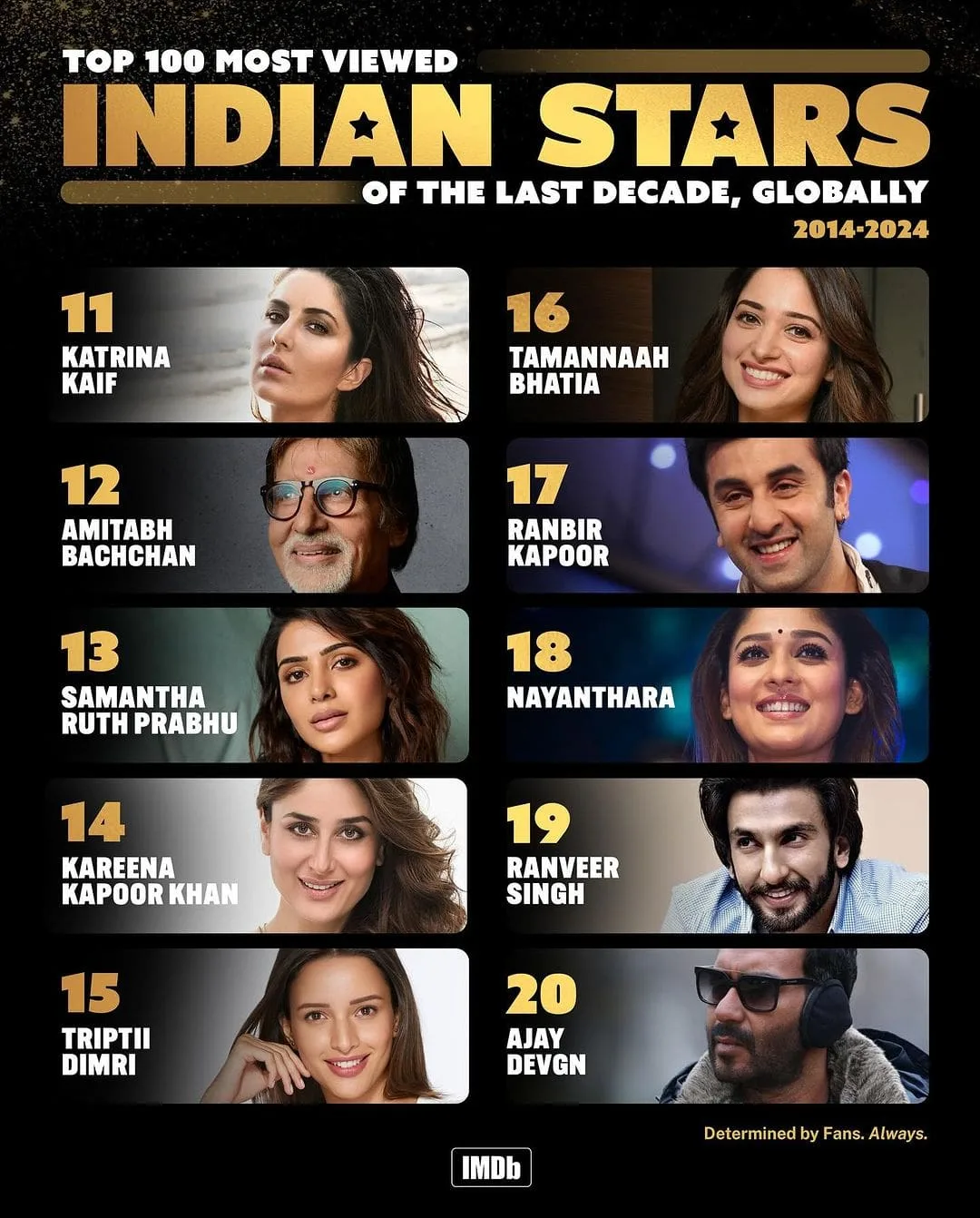 Nayanthara, another powerhouse performer from the South Indian film industry, has also made her mark by being ranked #18. Her consistent performances and dedication to her craft have earned her a spot among the top stars in Indian cinema.