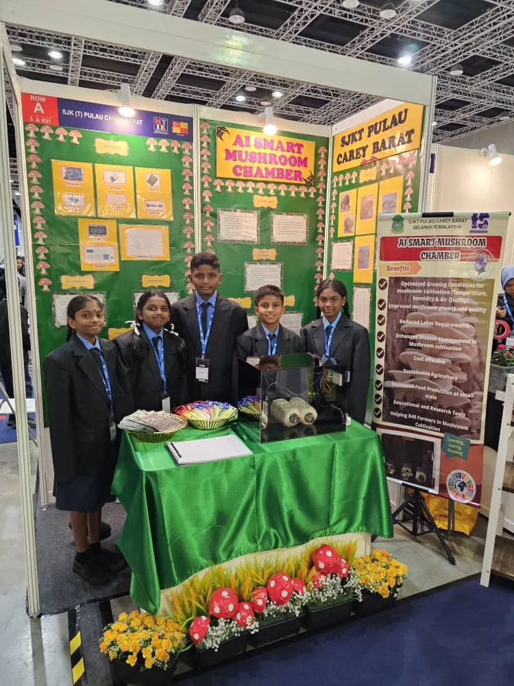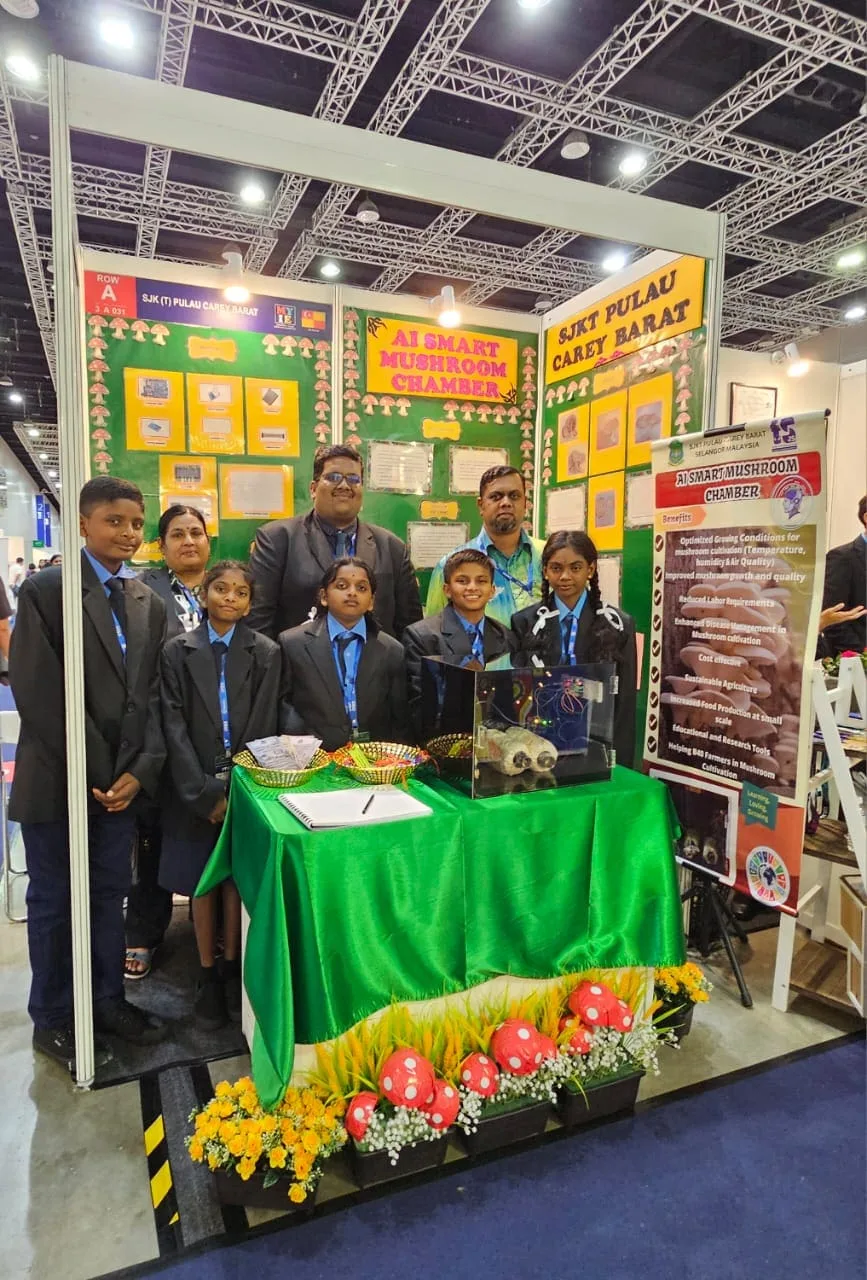 Under the mentorship of Mrs. Vasagai Gandan and the guidance of School Headmaster Mr. Stevan Antonysamy, five exceptional students Rubesh Kumaran, Sai Kavesh Saravanan, Thanosini Kamala Kannan, Kavilashini Vailmurugan, and Kirtika Kunasegaran crafted an AI Smart Mushroom Chamber.