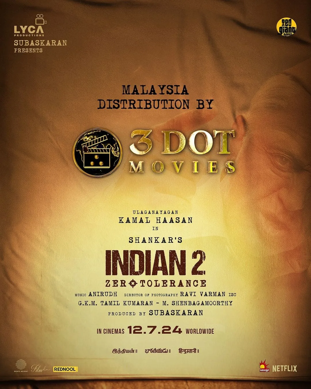 Lyca Productions recently generated excitement among Malaysian audiences by officially announcing on social media that 3 Dot Movies will handle the distribution of “Indian 2” in Malaysia. The poster shared marked the beginning of anticipation and buzz surrounding the film’s release in the region.