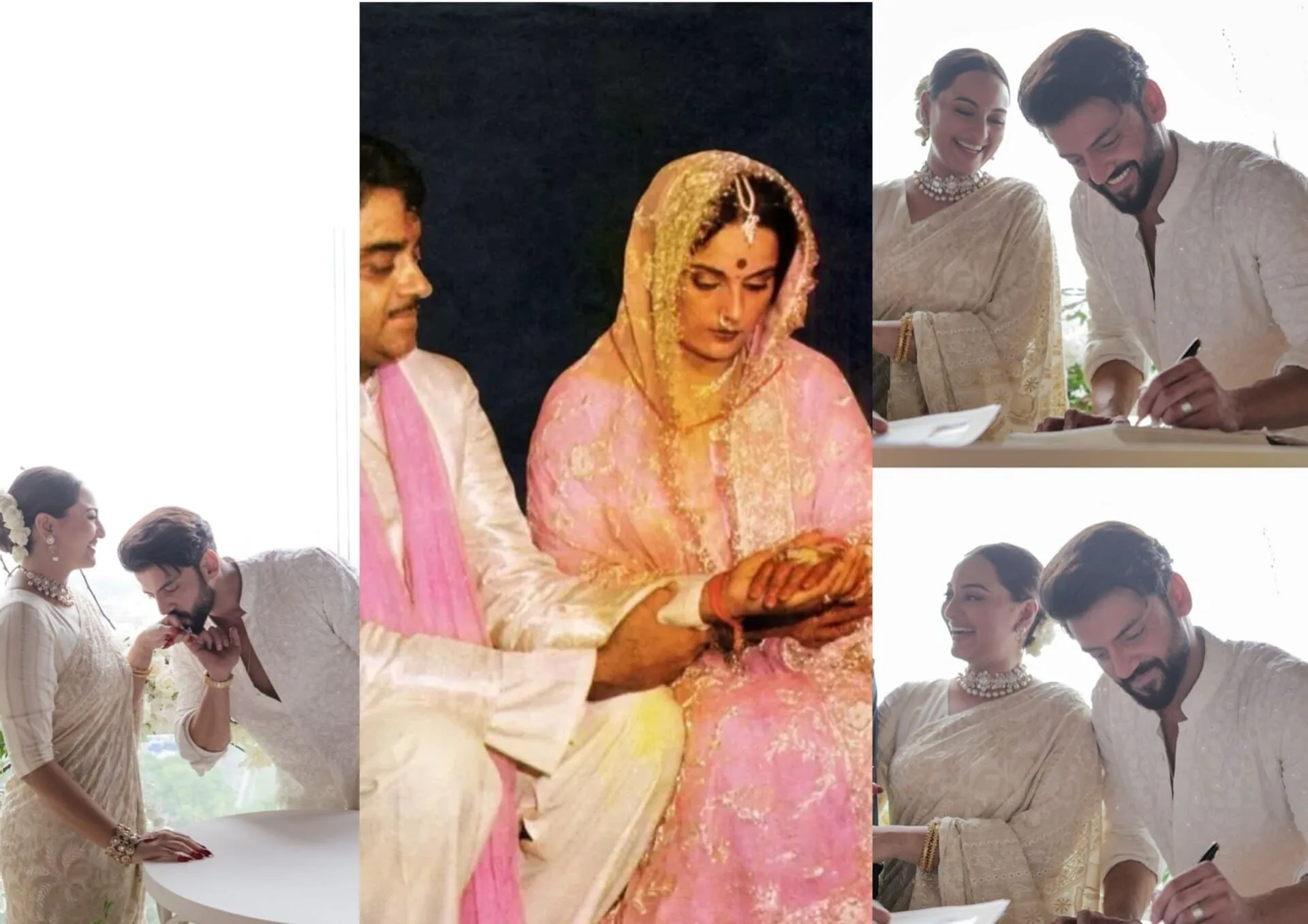 The saree of Poonam is over 44 years old and held sentimental value added a touch of heritage to the ceremony. Sonakshi adorned the saree with her mother’s vintage jewellery, white flowers in her hair and a matching ivory blouse. The simplicity and elegance of this look were a perfect representation of the actress’s deep-rooted respect for family traditions .