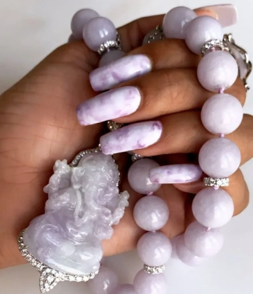 Rihannna was seen rocking a lavender jade pendant of Hindu deity, Lord Ganesha to match the rest of her outfit. The songstress and beauty mogul paired a lace purple dress over white t-shirt and jeans as she stepped out to attend her niece’s birthday in New York. She wore a Quetsche ‘Hidden Dress’ tulle t-shirt and paired the look with a handful of white and purple accessories.