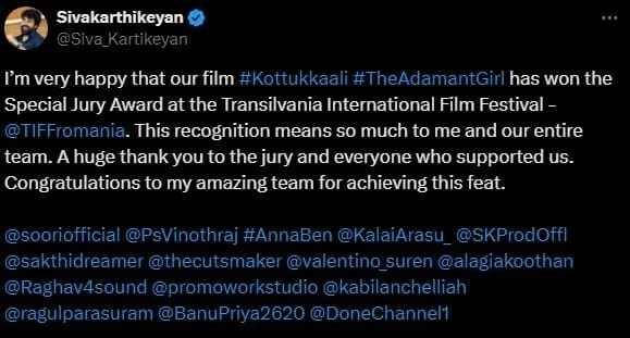 Sivakarthikeyan, one of the producers, shared his delight on the X platform about the film’s significant achievement.