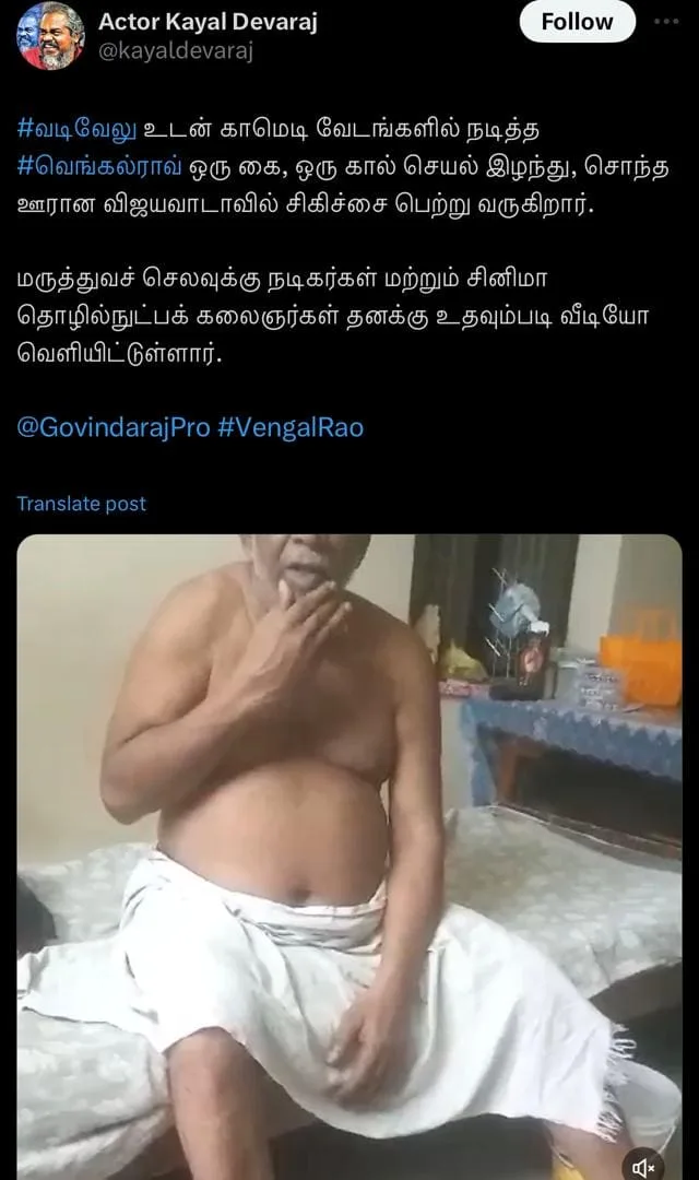 After suffering from a kidney ailment in 2022, he lately lost the use of one arm and one leg. He is currently receiving treatment at a private hospital in Vijayawada.Vengal Rao has addressed a note to film stars requesting financial assistance.