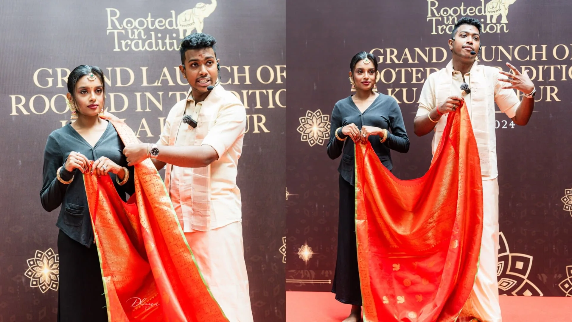 During the function, Thivyan not only displayed beautiful sarees from Rooted in Tradition, but he also shared insightful information about the history and development of Kanjivaram silk. Kanjivaram silk, which comes from the temple town of Kanchipuram, is well-known around the world for its exquisite workmanship and plush feel. Thivyan highlighted how these sarees have become synonymous with Indian tradition and have garnered international acclaim, adding prestige to India’s cultural heritage.