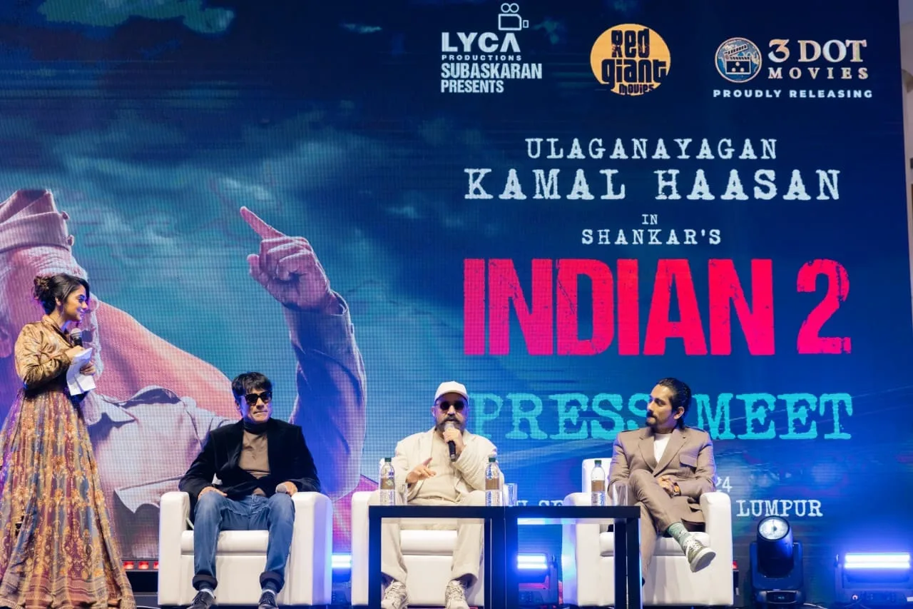 The star-studded cast and crew of ‘Indian 2’ visited Kuala Lumpur as part of their promotional tour in Malaysia. The press conference and fan meet unfolded at NU Sentral, Kuala Lumpur. Malaysia witnessed a glamorous event featuring an illustrious lineup including the legendary Indian actor Ulaganayagan Padma Shri Dr. Kamal Haasan, alongside SJ Suryah, Siddharth, and other esteemed guests from the movie.