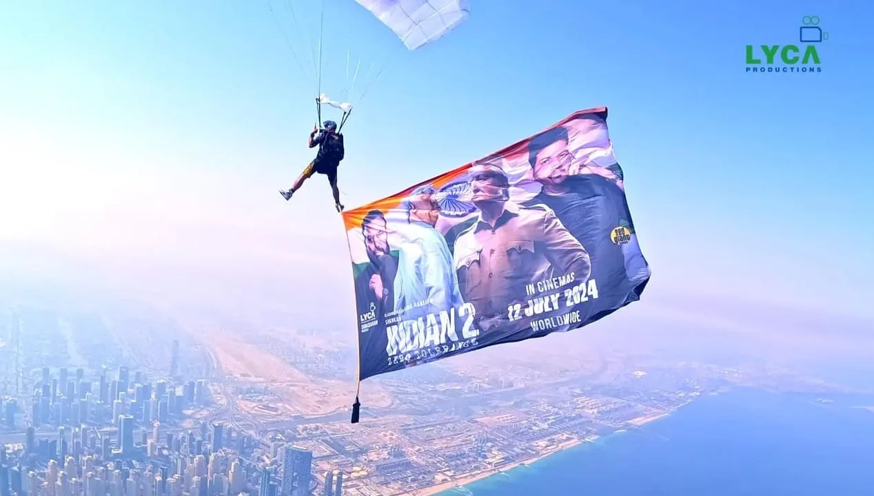 The Kamal Haasan starrer “Indian 2” is gearing up for a grand theatrical release on July 12, 2024, and the makers have initiated an extensive promotional campaign. Recently, “Indian 2” made a remarkable impact in Dubai with a large-scale skydive promotion. Just when fans thought the promotion for “Indian 2” was lacking, the makers astonished everyone with their latest strategy.