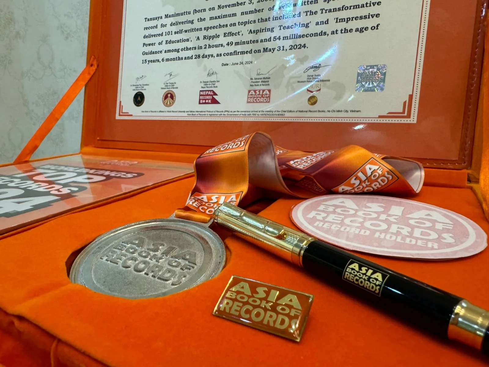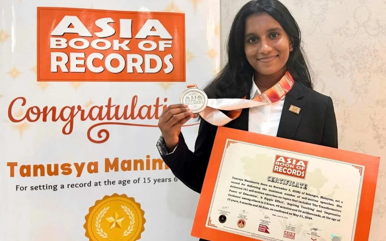 Tanusya Manimuttu’s journey to the Asia Book of Records is a testament to her exceptional talent, unwavering determination, and deep appreciation for education and those who nurture it. Her achievement in delivering 101 self-written speeches not only showcases her prowess in public speaking but also underscores the transformative power of dedication and support from her school community. Tanusya’s remarkable accomplishment not only inspires admiration but also sets a shining example for young individuals everywhere, demonstrating that with passion, perseverance, and a supportive environment, remarkable feats can be achieved at any age.