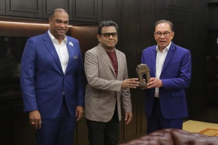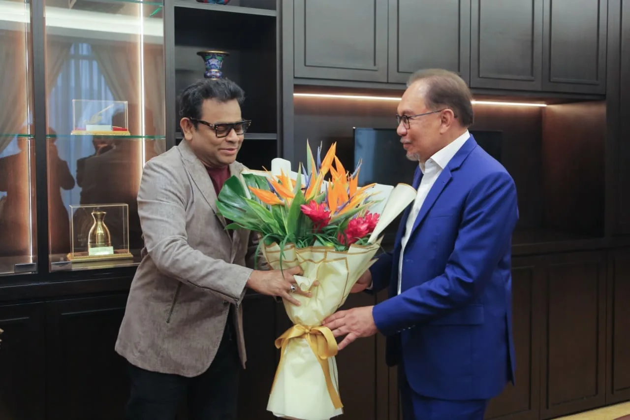 Rahman expressed his gratitude to Prime Minister Dato’ Seri Anwar Ibrahim for his warm hospitality and reaffirmed his dedication to promoting music and cultural exchanges between India and Malaysia. He presented a bouquet of flowers and a souvenir to the Prime Minister. Additionally present during the courtesy visit were Datuk Ramanan Ramakrishnan, Deputy Minister of Entrepreneur Development and Cooperatives; Dato’ Alan Foo, Managing Director of Star Planet; and Dato’ R. Rajendran, Director of Star Planet.