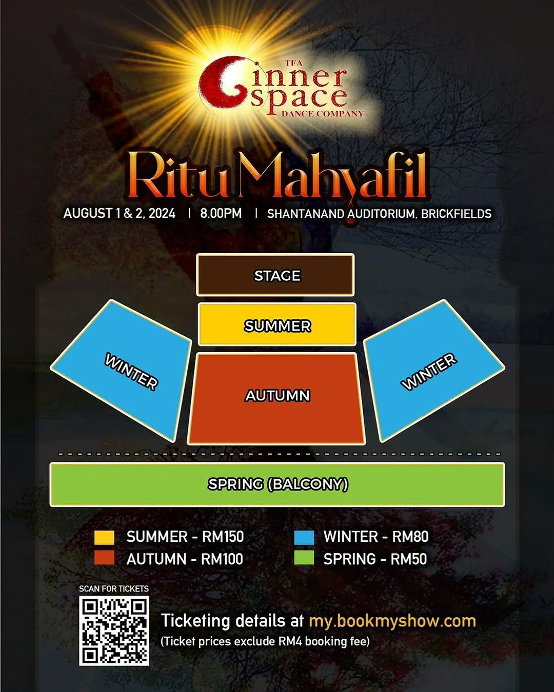Step into the enchanting world of Kathak, where rhythm intertwines with narrative in a captivating performance that mirrors the ebb and flow of nature’s eternal cycle. TFA INNER SPACE DANCE is delighted to present “Ritu Mahyafil,” a full-length Kathak performance enriched with live music. This captivating event will take place on August 1st and 2nd, 2024, 8pm at the prestigious Shantanand Auditorium at the Temple of Fine Arts in Brickfields. Prepare to be enchanted by a spellbinding display of artistry and grace.