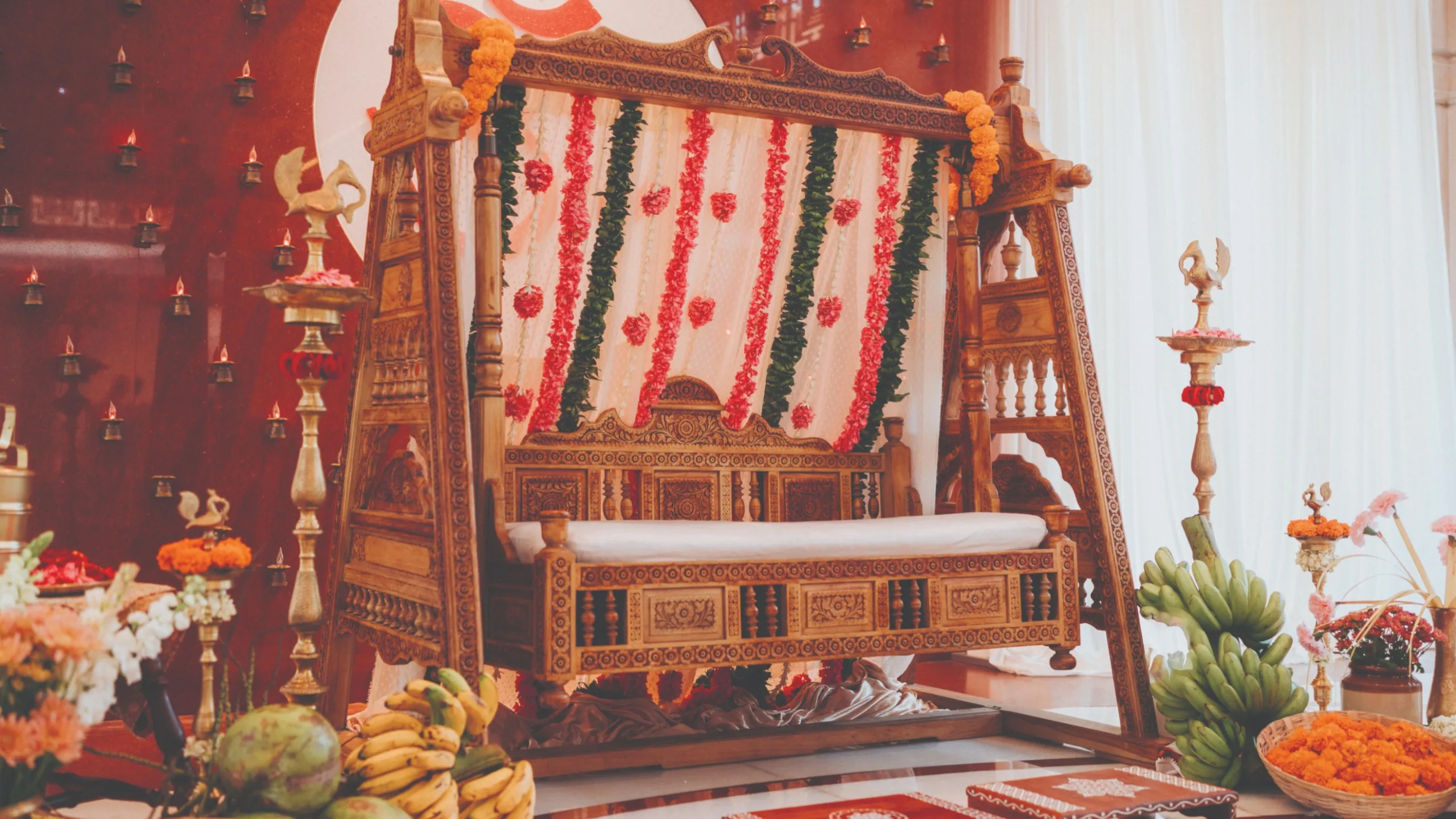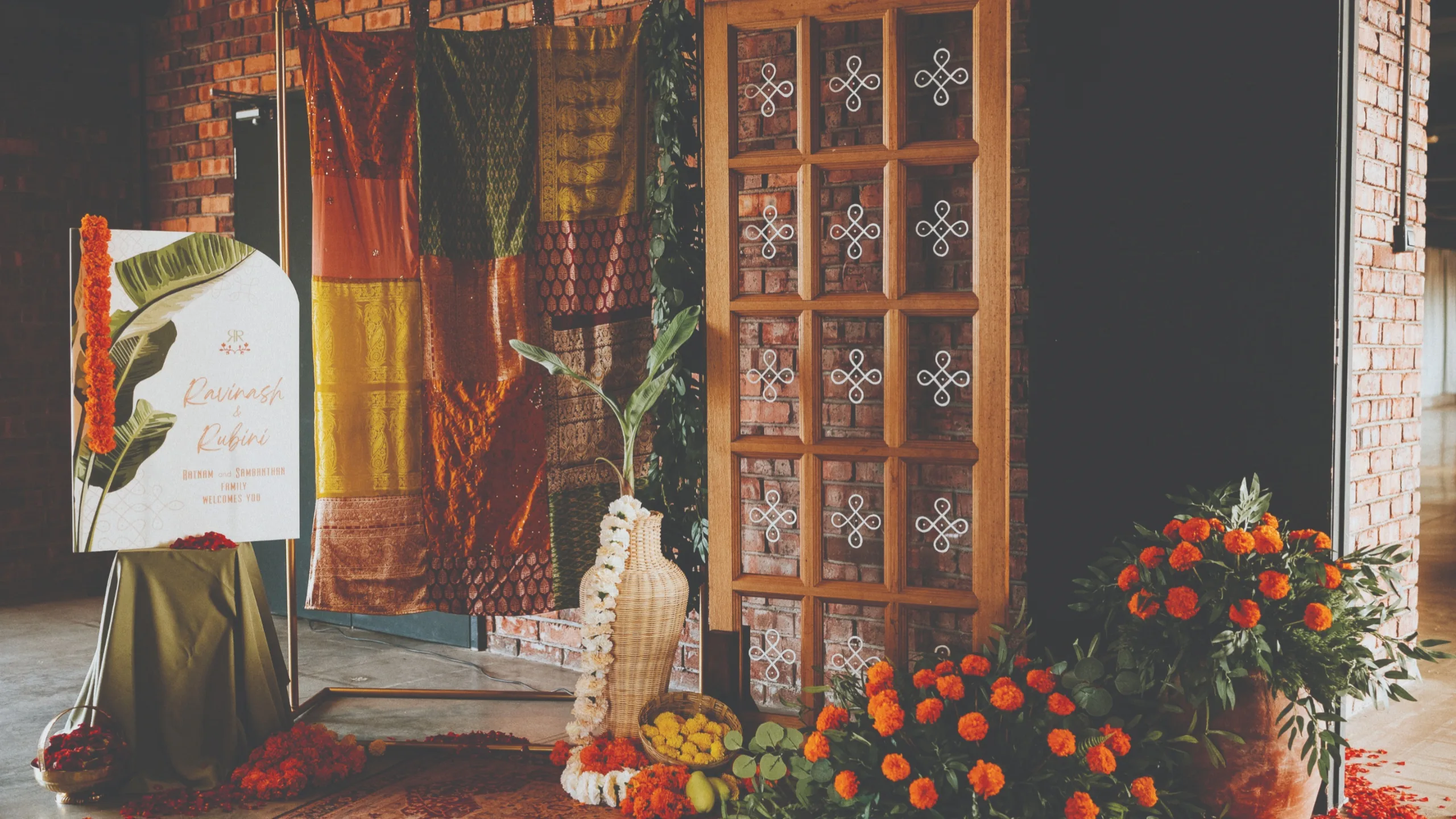 Mani Ratnam’s storytelling had a unique quality that set his work apart, characterized by meticulous attention to detail and a rhythmic aesthetic. Inspired by his methodical yet poetic style, I aimed to infuse this essence into my wedding decor. Striking a balance between staying true to this vision and highlighting individual details was both challenging and rewarding.”