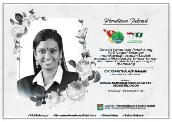 The PAS Supporters Congress (DHPP) women's chief, Kumutha Raman took her last breath yesterday (14th July) after battling COVID-19 for...