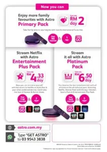 The Commercial Director of Astro, Azlin Arshad said, “Astro’s all-new packages are specially curated and designed to meet our customers’ diverse entertainment preferences, all at an amazing value. Watch Netflix’s premiering titles Red Notice and Squid Game side by side with Disney+ Hotstar’s Shang Chi and the Legend of the Ten Rings and Jungle Cruise or HBO’s And Just Like That and Succession, in addition to a wide variety of Astro’s own Korean, Asian and local favourites such as Maharaja Lawak Mega, Gegar Vaganza, Dukun Diva and many more.”