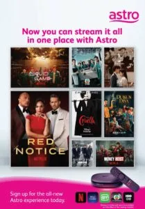 Tony Zameczkowski the Vice President for Business Development, APAC, Netflix said, “We’re thrilled to bring an elevated multi-device entertainment experience to more Malaysians. At Netflix, our goal is to offer the best-in-class entertainment to our members, and we’re thrilled that through this partnership with Astro, more Malaysians will be able to experience and enjoy our entire catalogue whether it be Hollywood blockbusters like Red Notice, Spanish series like Money Heist, Korean content such as the likes of Squid Game, which is a huge favourite among fans in Malaysia”.