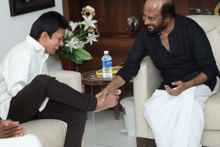 The artist, who was born without both hands, recently met Rajinikanth in Chennai. Known for his paintings, Pranav presented a portrait of Rajinikanth to the Superstar himself. The heartwarming photos of their interaction are making rounds of the internet. Rajinikanth even posed for a selfie with Pranav, who took the photo using his foot.