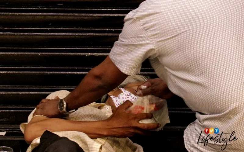 Despite all the hurdles, he never forgets to give back to the Homeless. Apart from delivering bread to the poor, he also makes nasi lemak and fried meehoon, and distributes it to them.
