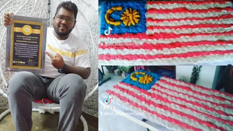 One of Ravi Putumayam Ipoh’s works has been chosen for inclusion in the Jackhi Book of World Records, which documents the unique talent of individuals or groups from various locations. Navin posted a picture in the month of August, in-line with Merdeka, where he made our national flag, Jalur Gemilang using all-time Malaysian favourite, Idiyappam.