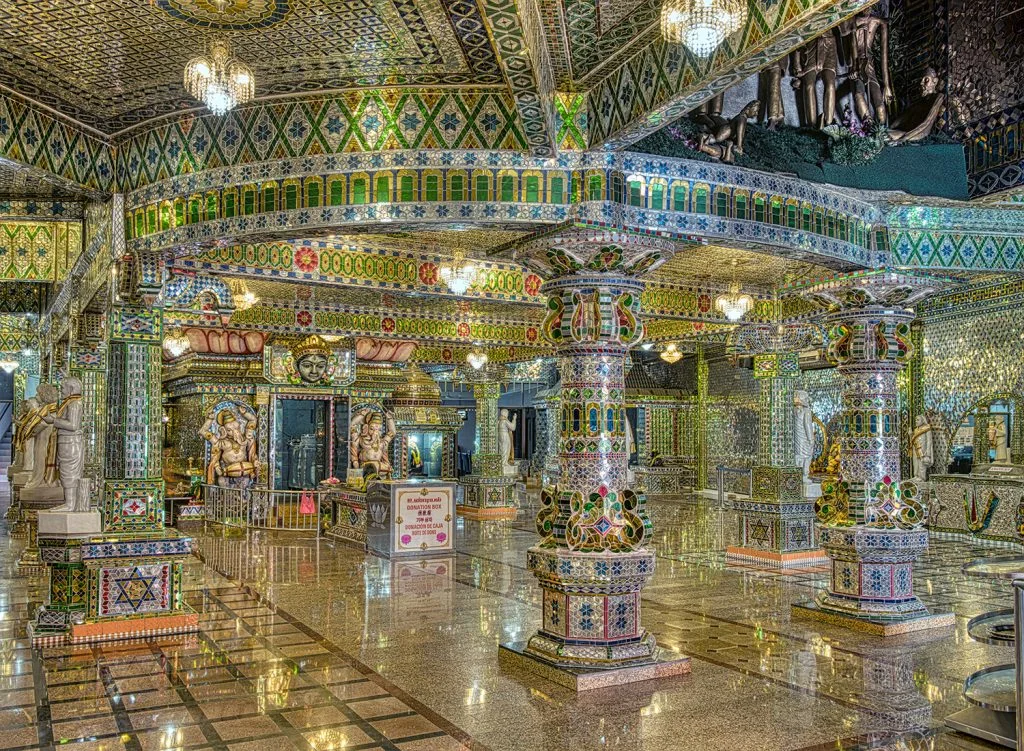 He wanted the small hut temple to earn a name for itself hence he renovated the temple with such magnificent details built entirely out of glass pieces, bringing a whole different astonishing artifact, leaving you mesmerised!