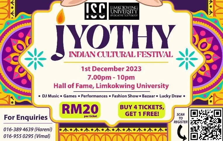 The International Student Club of Limkokwing university is organising "Jyothy 2023", an exciting Indian Cultural Festival in conjunction with Deepavali....