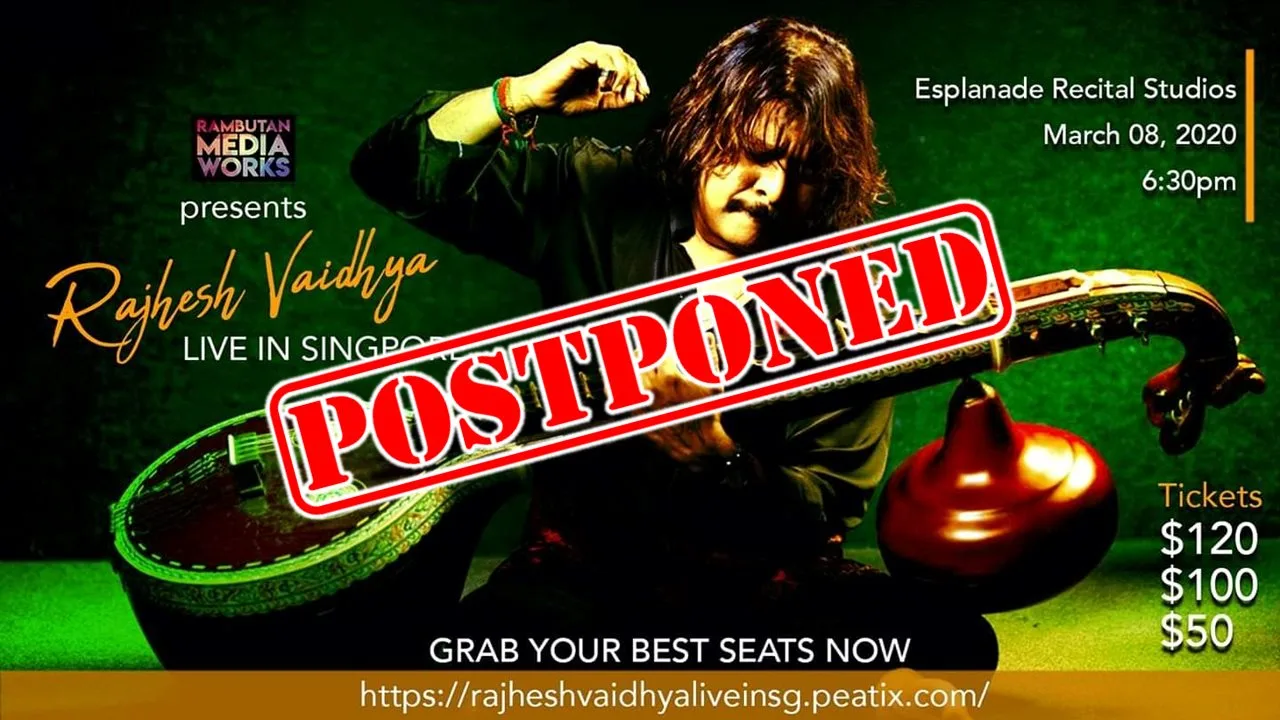 Rajhesh Vaidhya Live in Singapore, the concert by the veena maestro that was supposed to be held tomorrow night, has ...