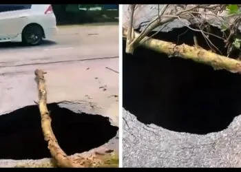 4-Metre Deep Sinkhole Opens Up Near SK Bandar Tasik Kesuma